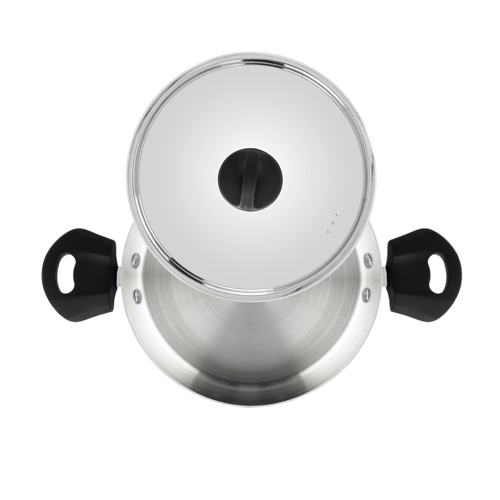Our Stainless Steel Deep Frypan with SAS bottom ensures even heating and prevents food from sticking or burning. Designed with soft-touch Bakelite handles and knobs for safe and comfortable use, it also comes with a stainless steel lid with vent holes to release steam. Ideal for frying, sautéing, or preparing gravies in everyday cooking.