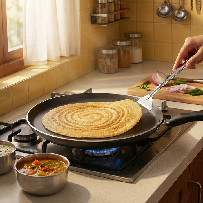 Flip, stir, and serve with ease using our Stainless Steel Turner. Designed for precision and durability, its flat edge and sturdy construction make it perfect for cooking pancakes, dosas, omelettes, and more. Made from premium food-grade stainless steel, it is hygienic, rust-resistant, and easy to handle.
