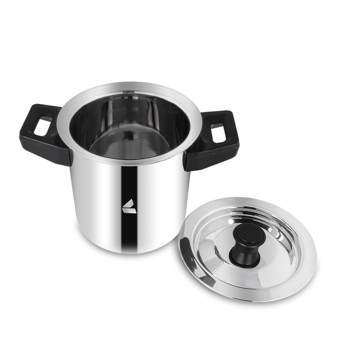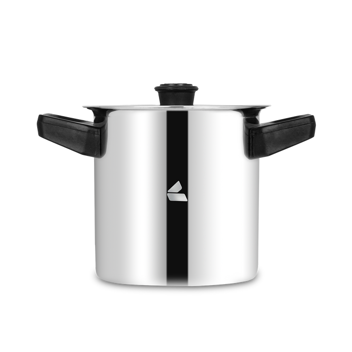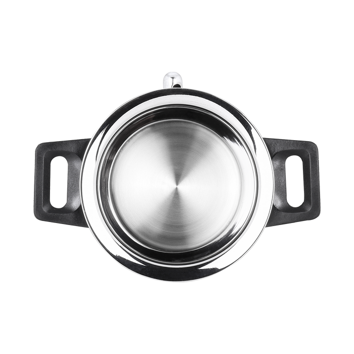 A durable Stainless Steel Milk Cooker with a double-walled design for safe, efficient milk boiling. The sturdy dual handles offer a firm, balanced grip for easy lifting and pouring, while the thick SAS base ensures uniform heating without scorching. Perfect for boiling milk, preparing tea, or heating water, this cooker combines practicality with long-lasting performance — ideal for everyday kitchens.
